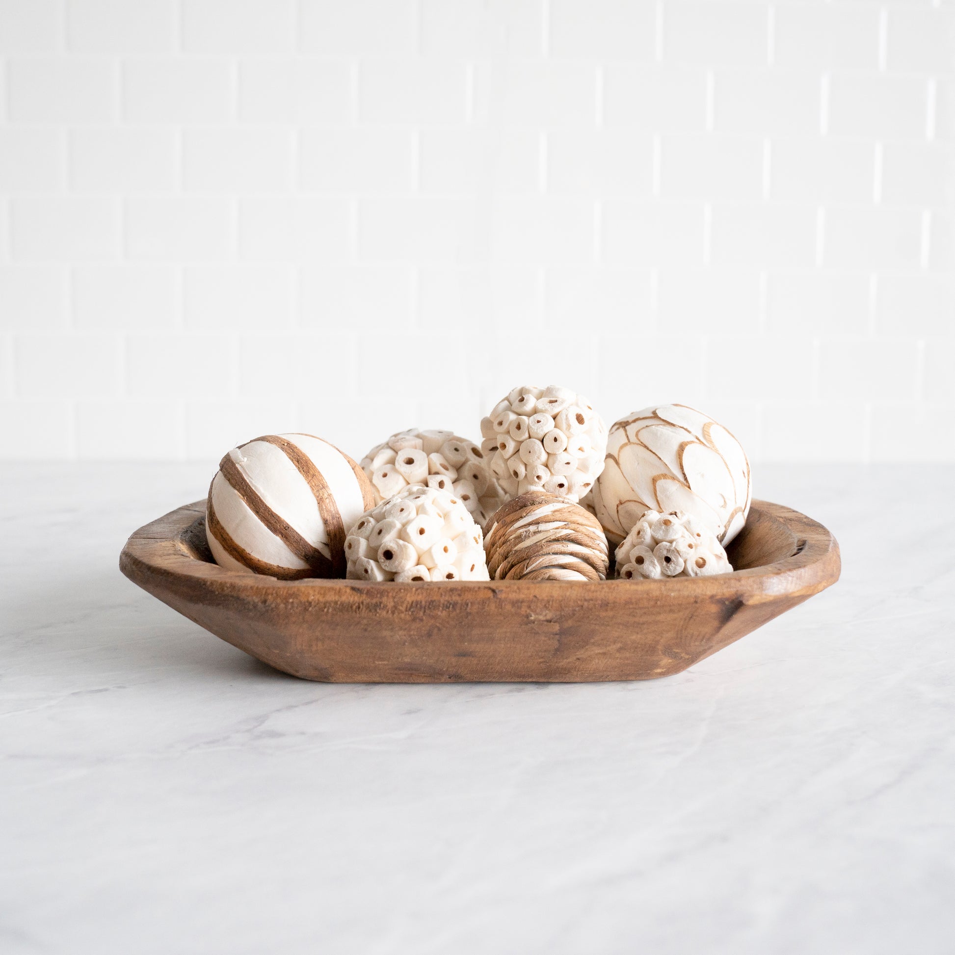 Hand-carved rustic mini dough bowls are great for decorating any room. They have beautiful notches, knots and carving marks making each bowl unique and a prefect yet subtle statement in any space.