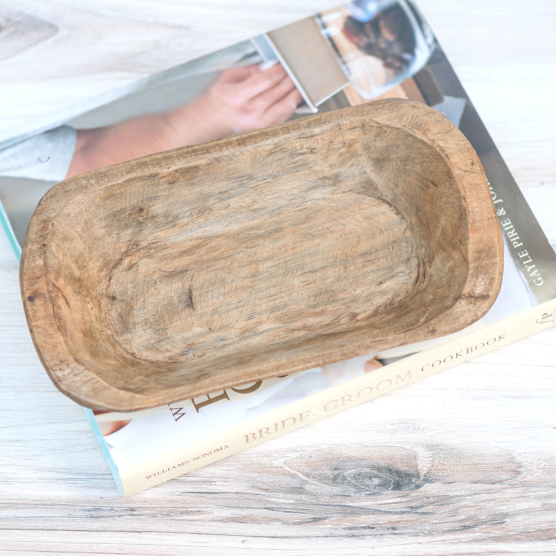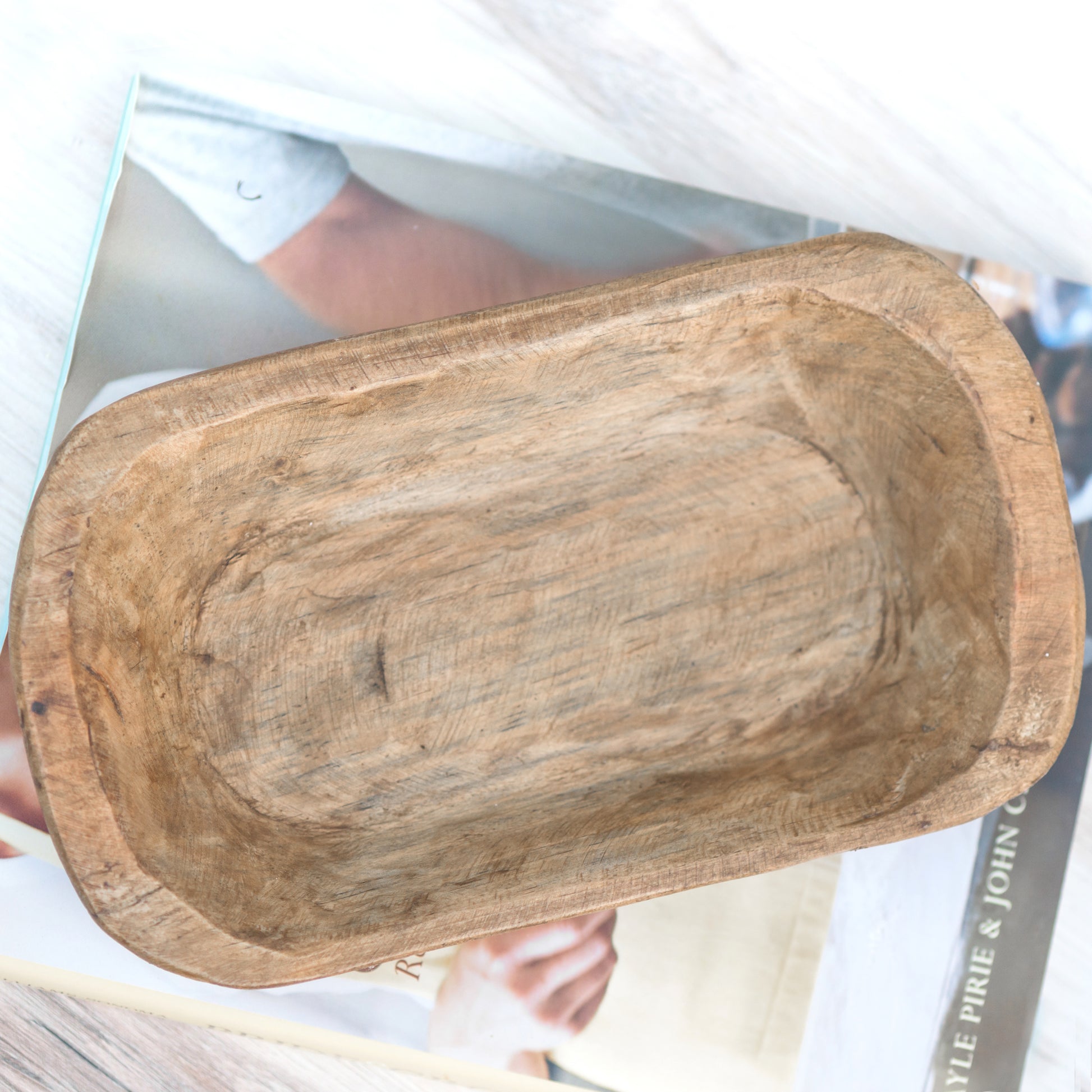Dimensions: approx. 9" x 6" x 2" (note: there will be some variations between each dough bowl as each are hand carved)